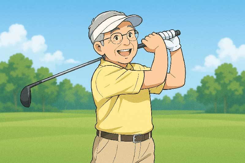 18ホールでの疲労と関節負担を軽くするため、ドライバー/UT=軽〜中量カーボン、アイアン=軽量スチール。振動吸収のメリットを活かしましょう。